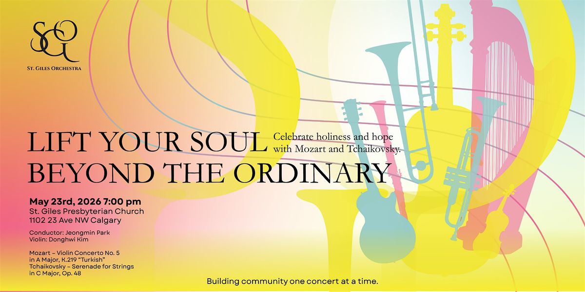 Join us at St. Giles Presbyterian Church in Calgary on May 23, 2026 at 7:00 PM with guest violin soloist Dongwhi Kim.