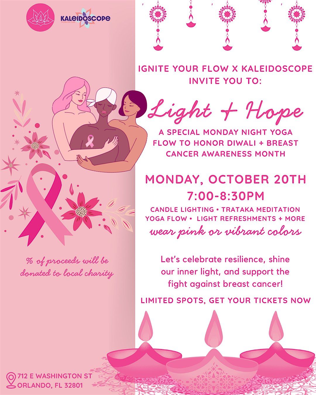 Ignite Your Flow Light + Hope: A Diwali Celebration & Breast Cancer Awareness Fundraiser 🪔🎀