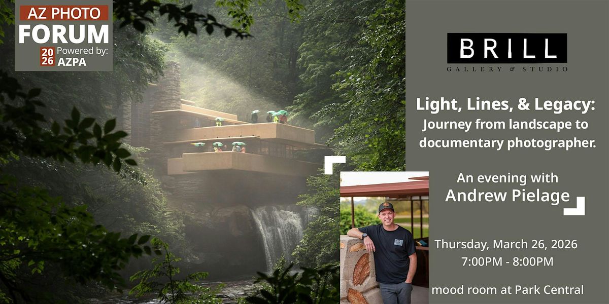 Join us at the mood room at Park Central for an evening of conversation with Andrew Pielage, a landscape photographer, educator, and dedicated documentarian of Frank Lloyd Wright’s designs. Andrew will share his journey, influences, and ongoing mission to photograph all of Wright’s remaining works, along with insights into his creative process and career behind the camera.