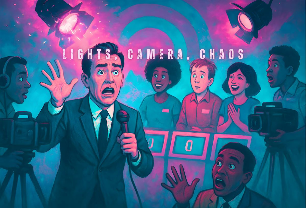 Welcome to television’s wildest night! When the cameras start rolling on this brand-new game show, everything that can go wrong does — and spectacularly so. The lights are flickering, the host has lost control, the contestants are either divas or total disasters, and the crew is barely hanging on behind the scenes.
