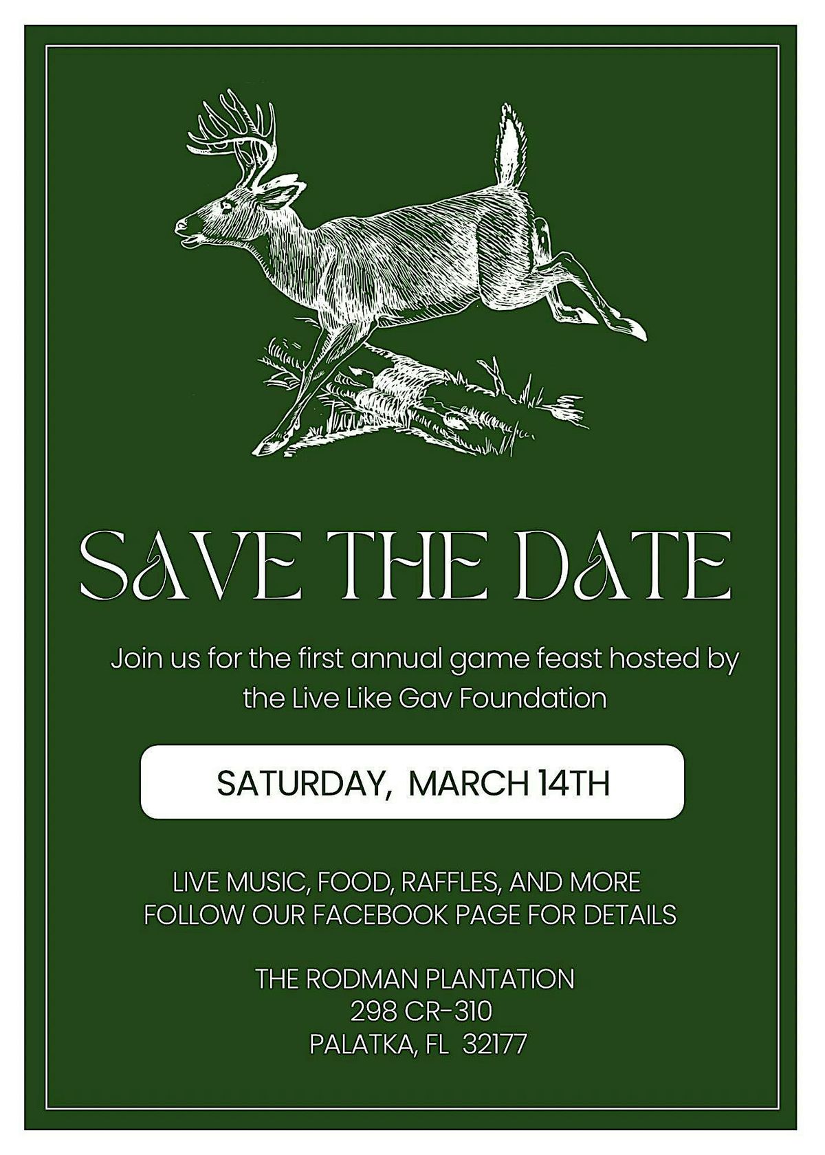 Join us for the 1st annual game feast hosted by the Live Like Gav Foundation. Music, Food, Raffles, and more.