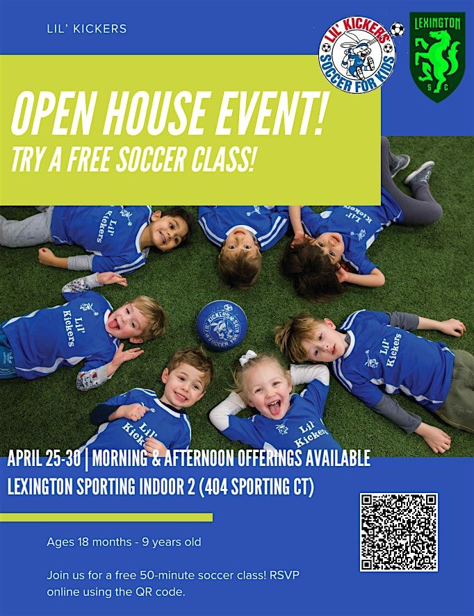Hey parents! Ready to kick off some fun? Join us at the Lil' Kickers Spring Open House and watch your little ones dive into exciting soccer drills and games. This in-person event is perfect for introducing your kids to the joy of soccer in a super friendly setting. Bring your energy and smiles, and let's have a blast kicking into spring! Ages 18 months to 9 years
