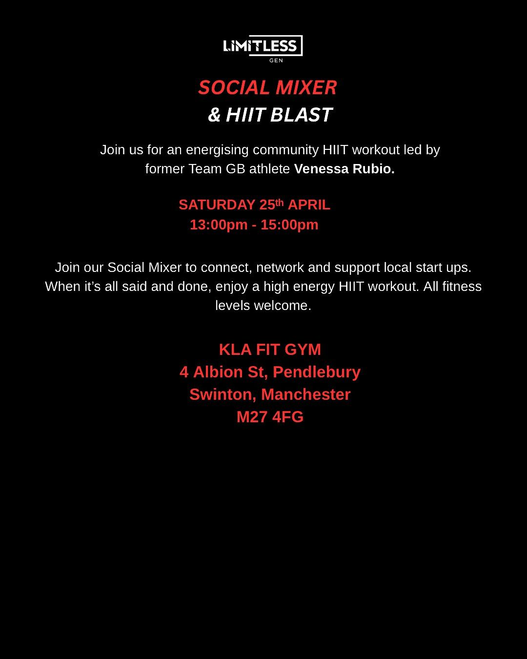 Join our social mixer at 13:00pm on Saturday 25th April, followed by a HIIT workout with Team GB athlete Vanessa Rubio. All levels welcome.About this Event