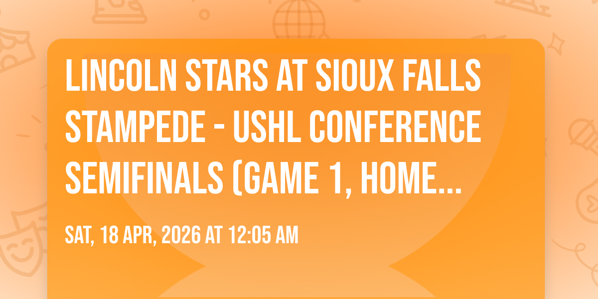 📍 Location: 43.5635, -96.747✨ Enter a world of endless possibilities at Lincoln Stars at Sioux Falls Stampede - USHL Conference Semifinals (Game 1, Home Game 1), where every moment tells a story! 🏛️ The stunning Denny Sanford Premier Center in vibrant Sioux Falls, SD transforms into a realm of wonder on April 18th, 2026 at 12:05 AM. 🌟 They have crafted an experience that goes beyond the ordinary, combining elements of surprise, delight, and pure entertainment. Every detail has been thoughtfully considered to ensure your journey with us is nothing short of extraordinary. 🎯 Join fellow adventure seekers and memory makers in this celebration of imagination and innovation. 🎊 Reserve your spot today and be part of something truly special!