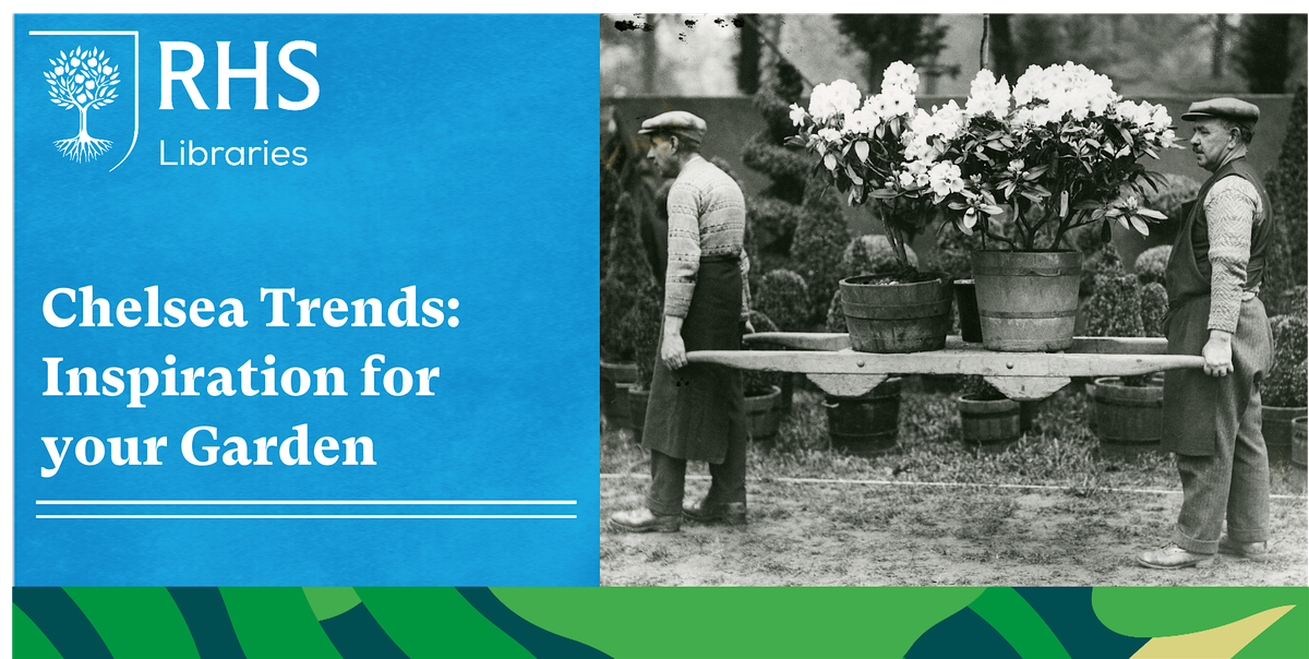 The image in the banner a photograph from the 1931 RHS Chelsea Flower Show, depicting two gardeners transporting large plant pots on a hand barrow. Discover more items from our botanical art collection on the RHS Digital Collections.