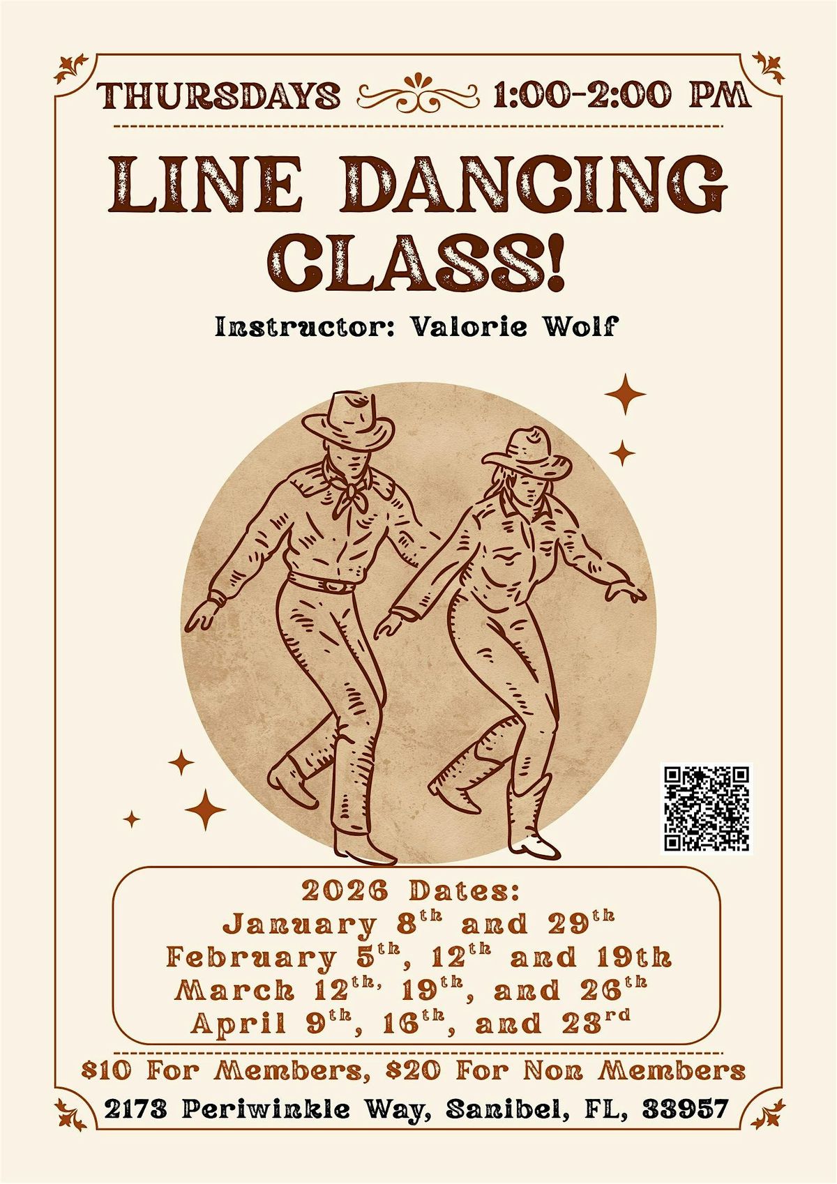 Line Dancing Class Dates/ Times for 2026: