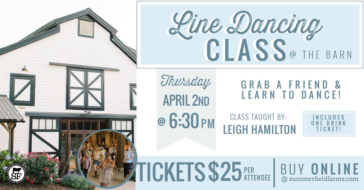 Join us and instructor Leigh Hamilton for a fun and energetic Line Dancing Class at Summerfield Farms! Grab your boots and get ready to dance the night away.
