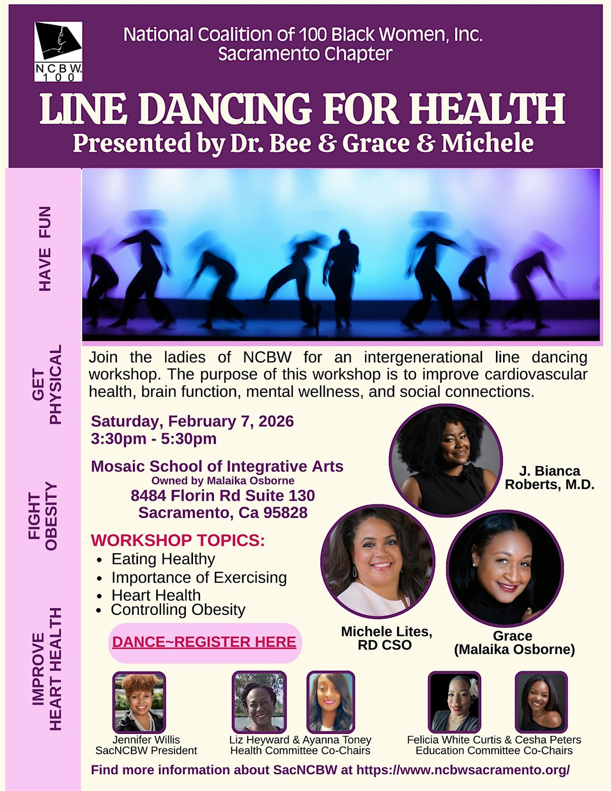 Join the ladies of NCBW for an intergenerational line dancingworkshop improve cardiovascular