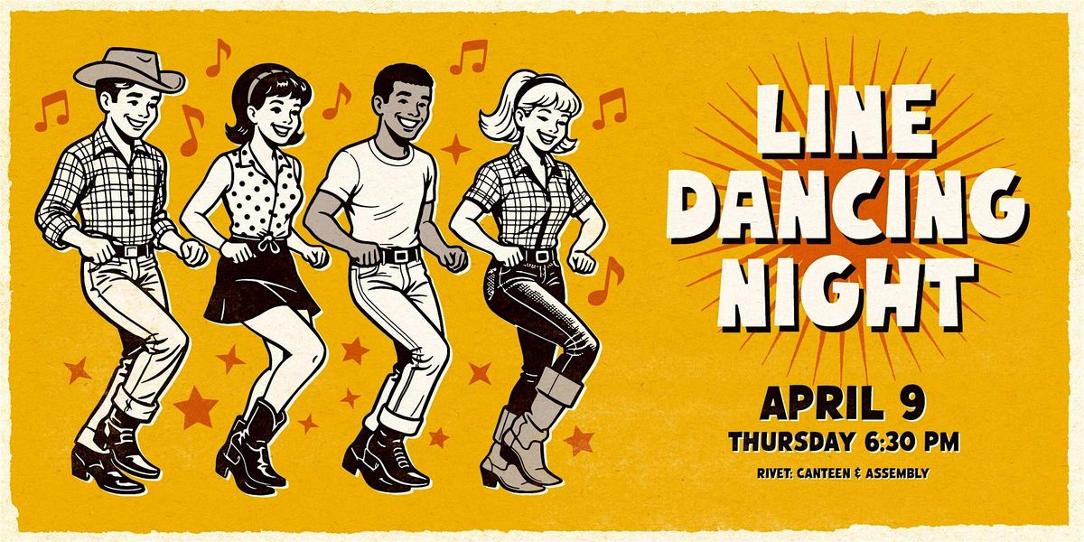 Line Dancing Night is back at Rivet: Canteen & Assembly on Thursday, April 9th! After two previous nights full of high energy and fun, we couldn't resist bringing it back for another round! All skill levels are welcome to attend, whether you're just learning the steps or already a line dancing pro!