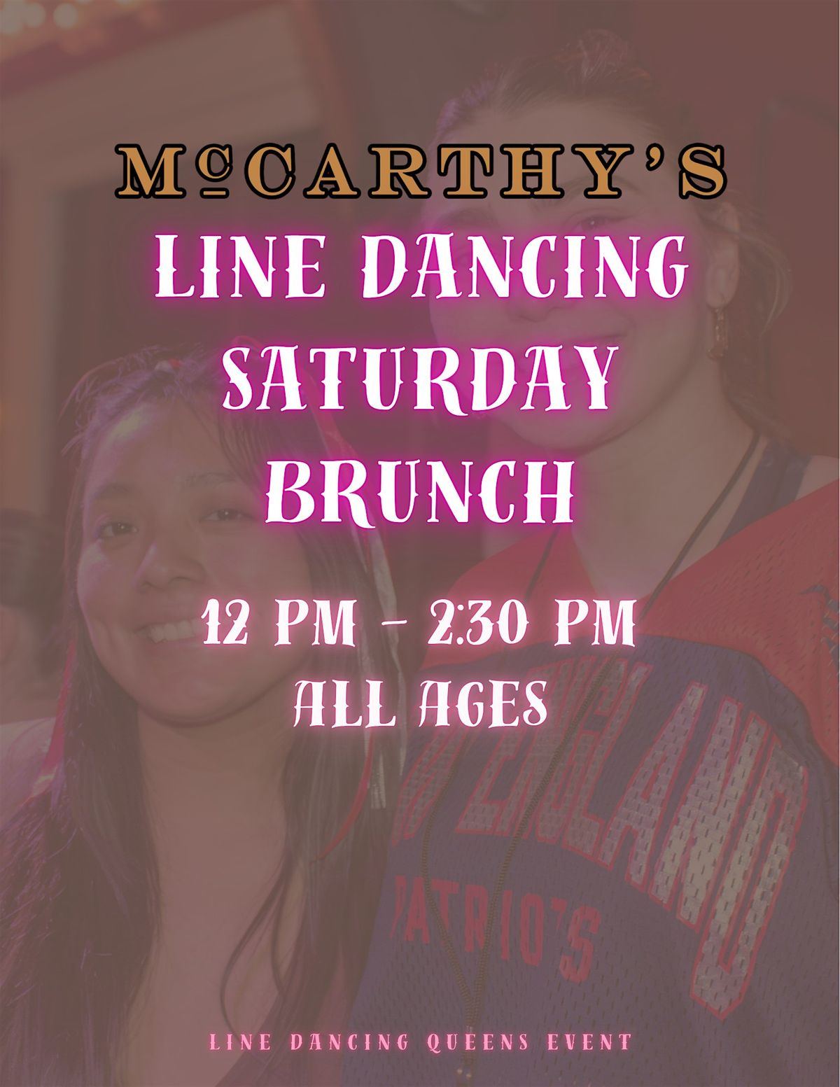 Join the line dancing queens for Saturday Line Dancing brunch at McCarthy’s! No experience needed, only $5, and make new friends!