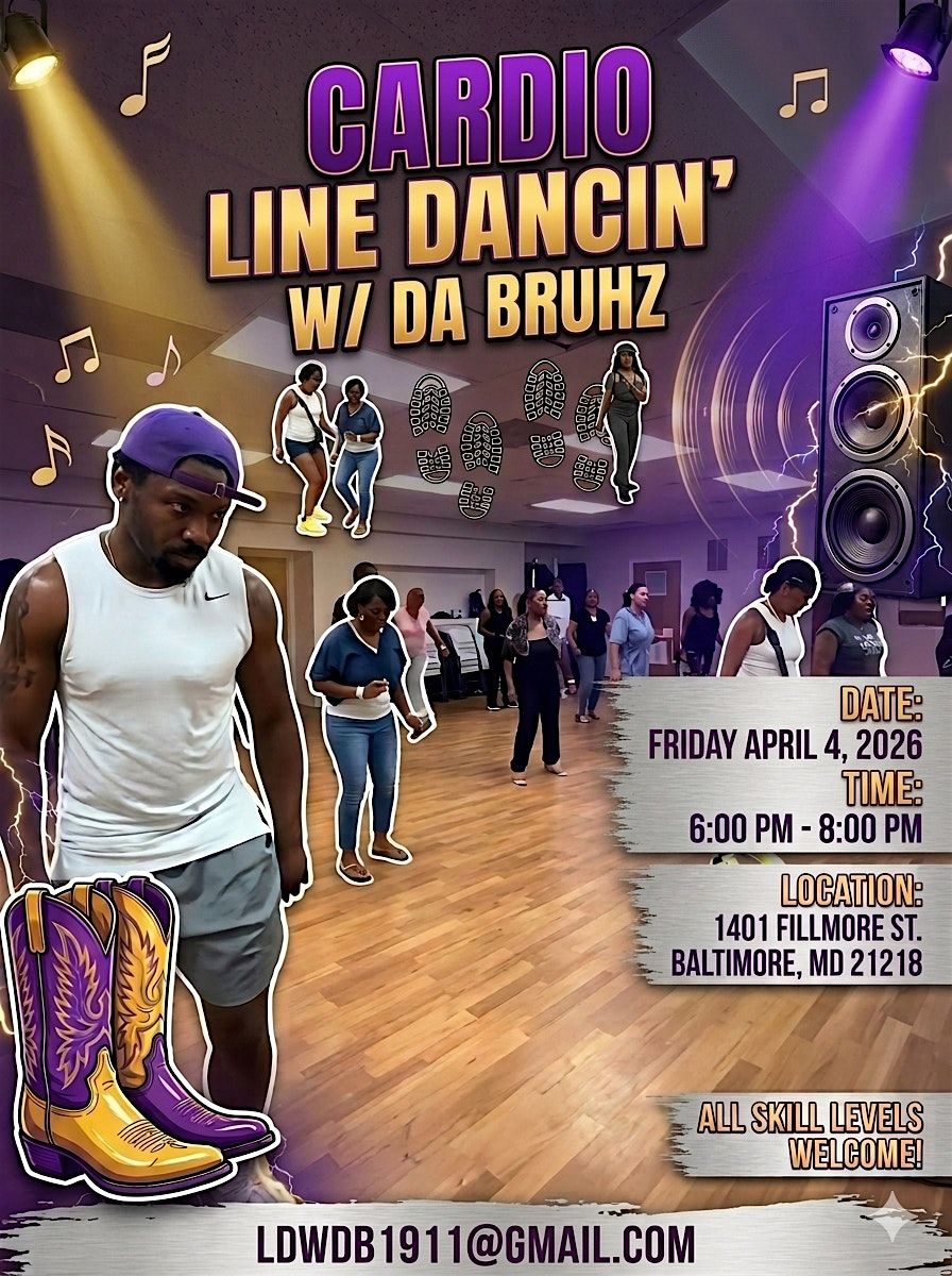 Join us in person for a fun-filled night of cardio line dancing with the coolest crew around, Da Bruhz! Whether you're a pro or just starting out, come move your feet and enjoy great vibes.