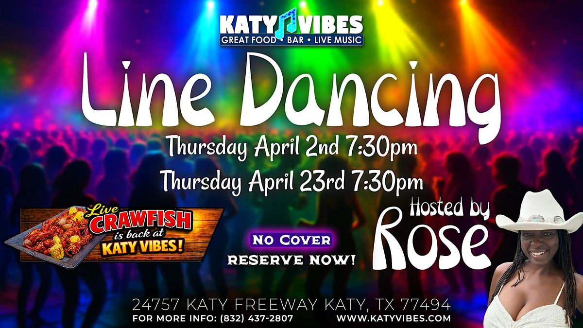 🤠 Line Dancing with Rose returns to Katy Vibes on Thursday, April 2 and Thursday, April 23 at 7:30 PM. 💃