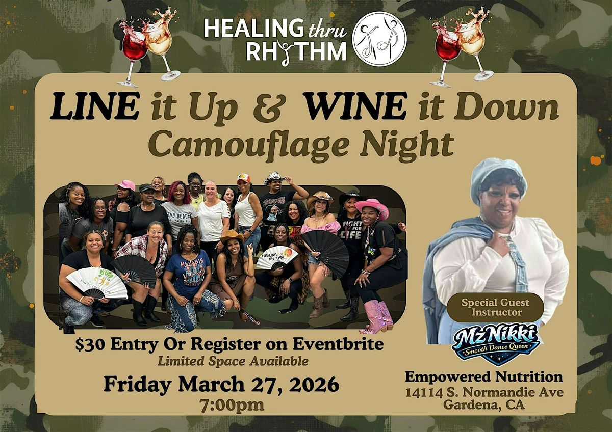 Line it Up & Wine it Down returns with step‑by‑step line dancing; special guest Mz. Nikki, and wine to close the night. Don't miss out!