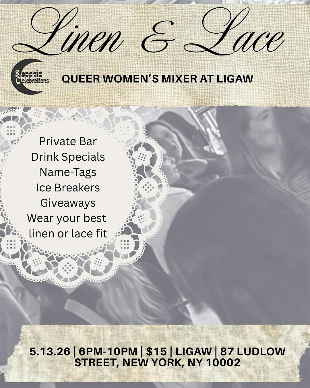 We are shutting down LIGAW again for our queer women's mixer to allow other women to connect. Whether you're looking for friends dating or anything in between this is the spot. Tickets for our last event here sold out, so please be sure to show up early and get your tickets in advance.