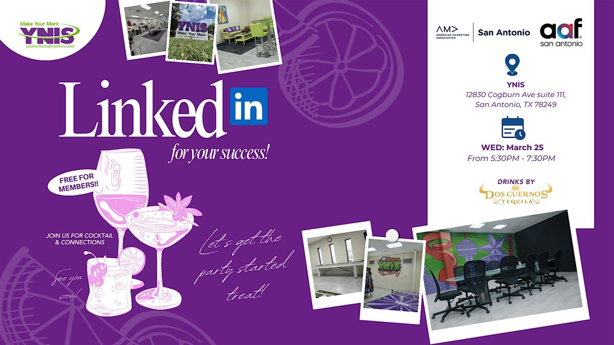 Join AMA and ADFED San Antonio for Cocktail Connections at You Name It Specialties! You will gain insights from industry professionals and LinkedIn experts on how to leverage LinkedIn for brand growth, business development, and strategic partnerships.