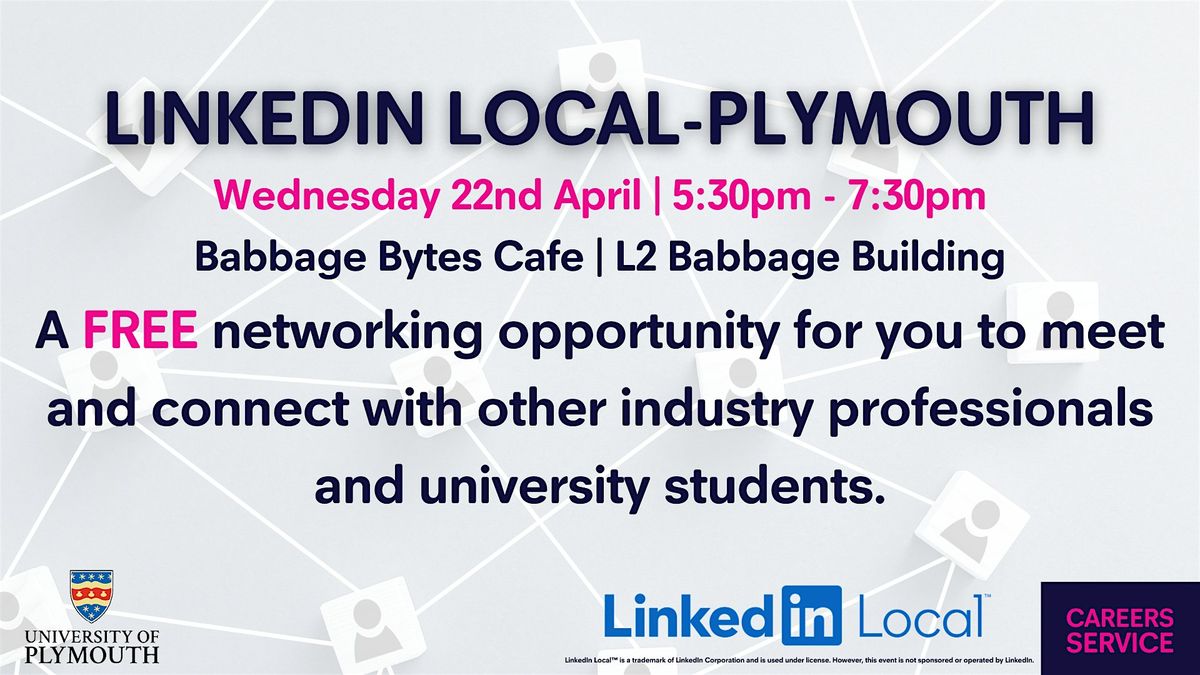 Join us to network and connect with other local professionals and students at our next instalment of LinkedIn Local, here at the University of Plymouth.