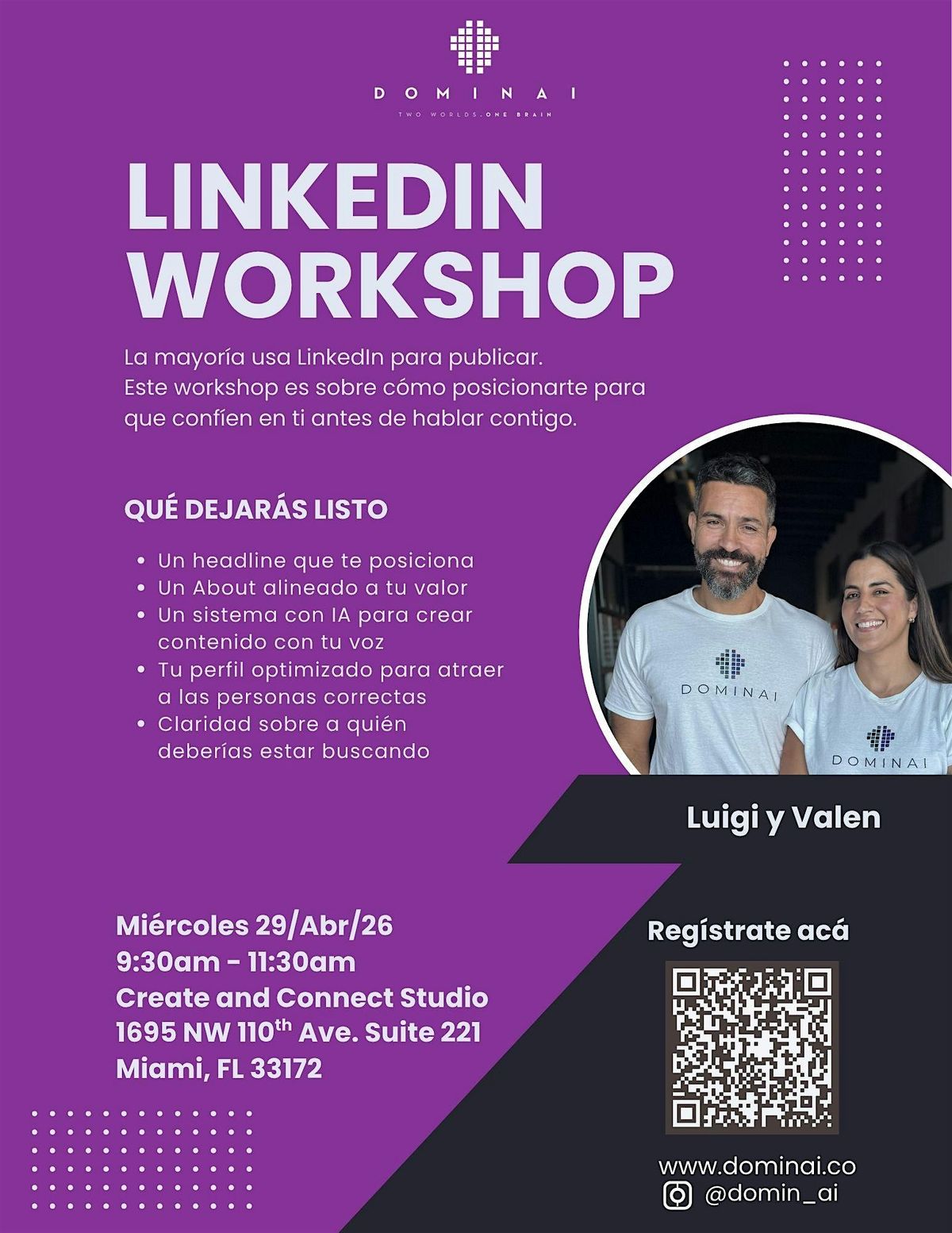 Este LinkedIn Workshop está diseñado para ayudarte a transformar tu perfil en una herramienta estratégica de posicionamiento y generación de oportunidades. En esta experiencia práctica, aprenderás a optimizar tu headline, alinear tu mensaje con tu valor y crear contenido con apoyo de inteligencia artificial que refleje tu voz auténtica. Saldrás con un perfil listo para atraer a las personas correctas, mayor claridad sobre tu audiencia ideal y un sistema que te permitirá construir autoridad y confianza antes incluso de tener una conversación. Ideal para emprendedores, profesionales y dueños de negocio que quieren convertir LinkedIn en un canal real de crecimiento. Trae tu laptop, agarra un cafecito y prepárate para optimizar esta poderosa herramienta.
