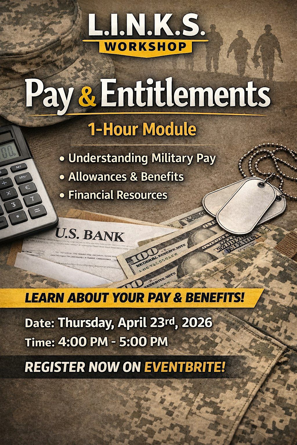 Marine Corps Family Team Building (MCFTB) invites you to attend the L.I.N.K.S. Pay & Entitlements Workshop, a focused 1-hour session designed to strengthen your financial awareness and confidence.