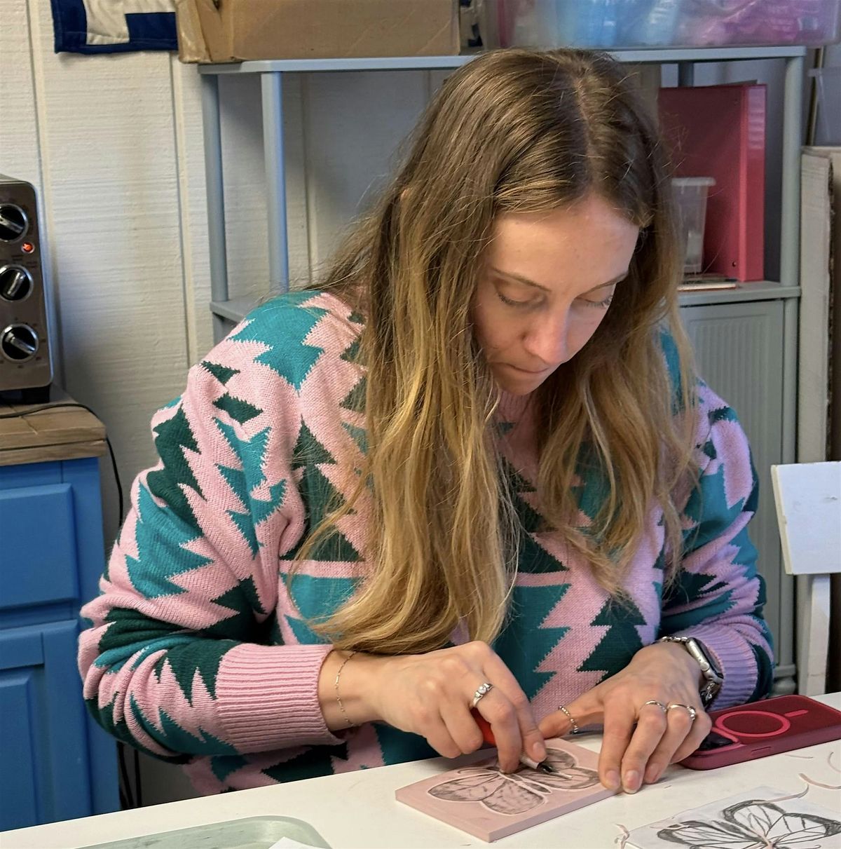 This workshop is for those who want to expand beyond paper or anyone interested in DIY clothing and accessories. Basic carving experience helps but not required. Perfect if you have blocks sitting around and want new ways to use them.
