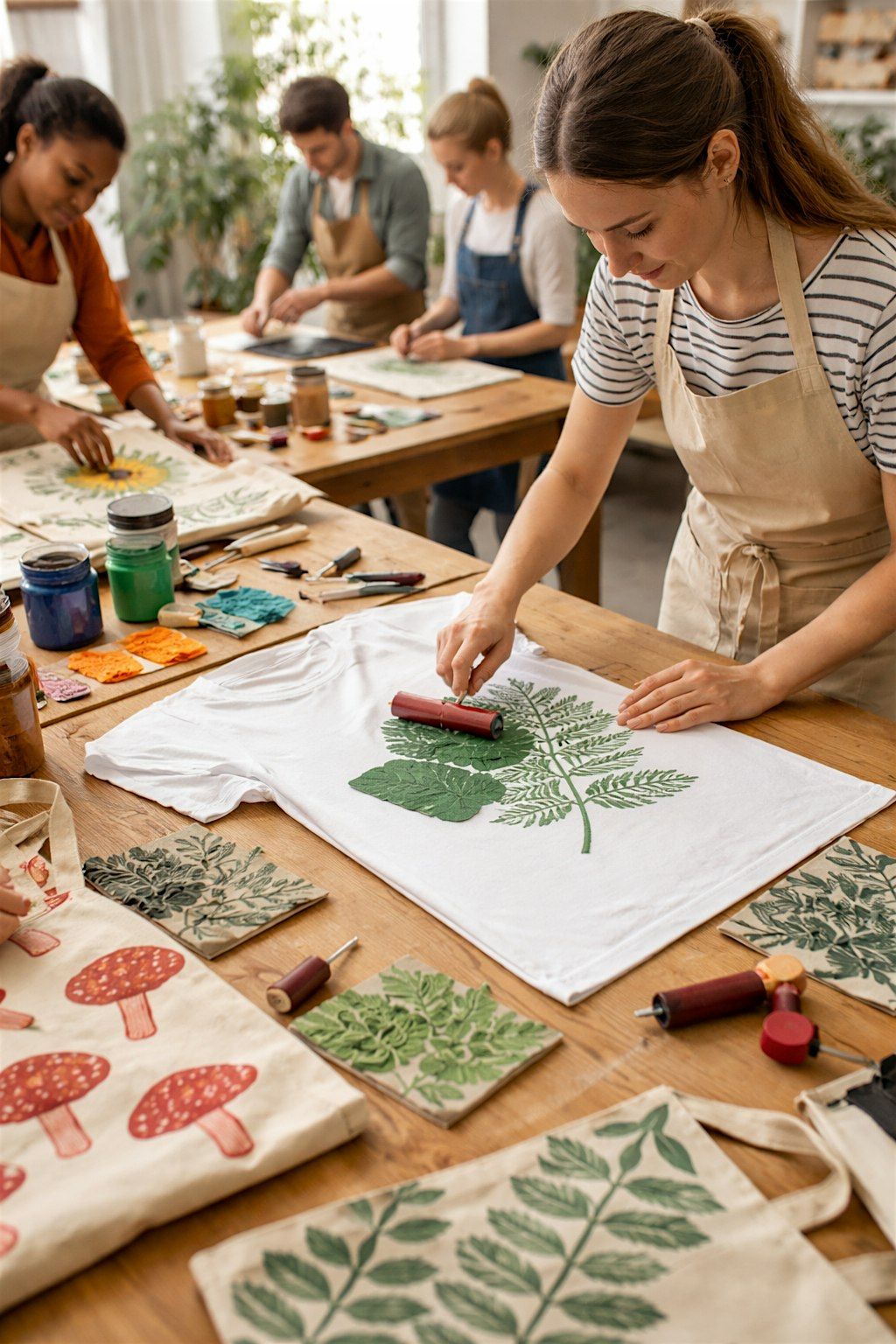 Design your own lino stamp and print it on clothes or fabric. Bring your own or customize one of our T-shirts.