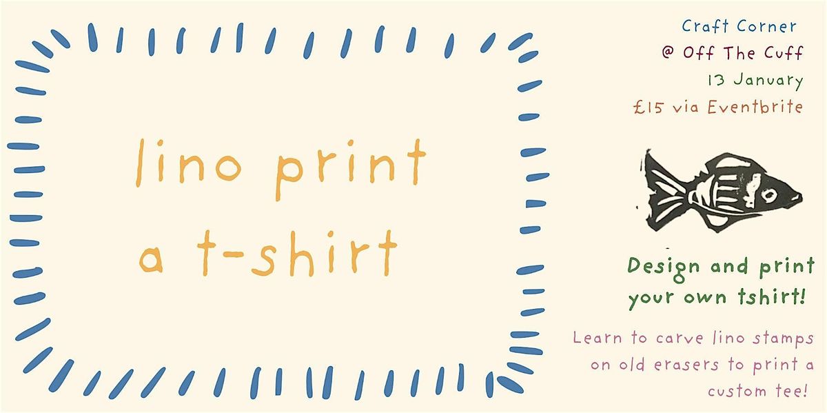 Get ready to dive into the fun world of lino stamping – a hands-on workshop where you'll learn to create cool designs by carving erasersand printing on tshirts or tote bags. Perfect for all skill levels, this in-person event lets you unleash your creativity, make personalised garments, and maybe even start a new hobby. Bring your friends or come solo; either way, you're in for a creative blast!