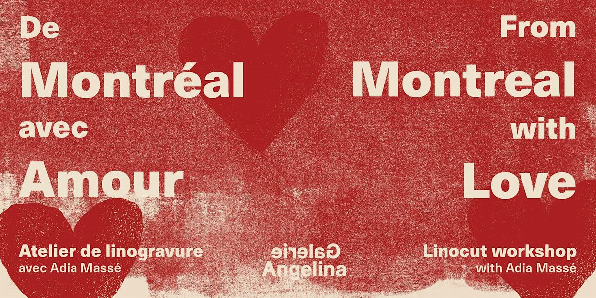 Join us for a linocut workshop with Adia Massé on February 14. Create your own design from scratch. Make it romantic, platonic or even ironic. Carve it, ink it and print your piece by hand. Come on your own or with a friend.