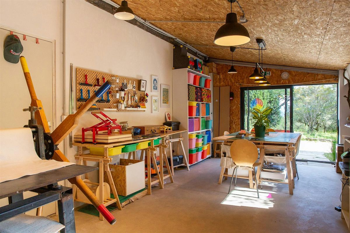 L’atelier, coloré et confortable, est équipé de 3 presses, d’une station d’encrage et d’une large table pour le dessin et la gravure. Les cours sont assurés en petit groupe afin d’offrir à chacun un temps personnalisé.