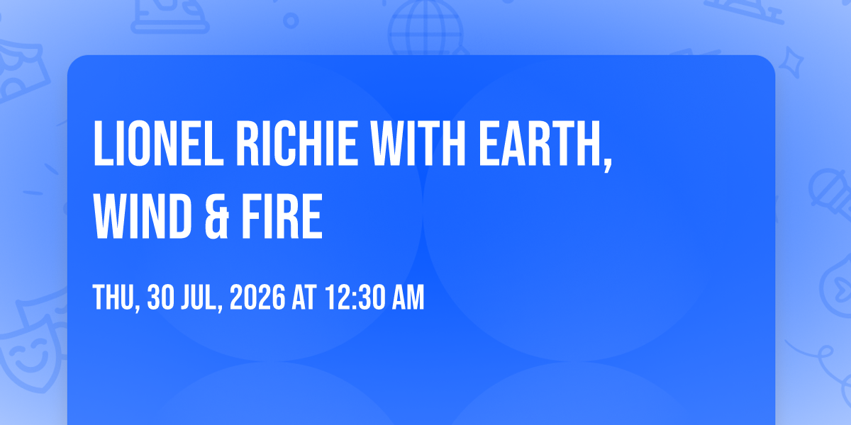 📍 Location: 32.7904, -96.8103✨ Embark on an extraordinary journey at Lionel Richie with Earth, Wind & Fire, where every moment promises to be unforgettable! 🌟 Imagine of transforming American Airlines Center in the heart of Dallas, TX into a realm of endless possibilities. 📅 Join us on July 30th, 2026 at 12:30 AM for an experience that will challenge your imagination and exceed your expectations. 🎯 This carefully curated event combines the finest elements of entertainment, innovation, and community spirit. Whether you're an adventure seeker, culture enthusiast, or someone looking for unique experiences, this event offers something special for everyone. 🎊 Don't miss this chance to be part of something extraordinary!