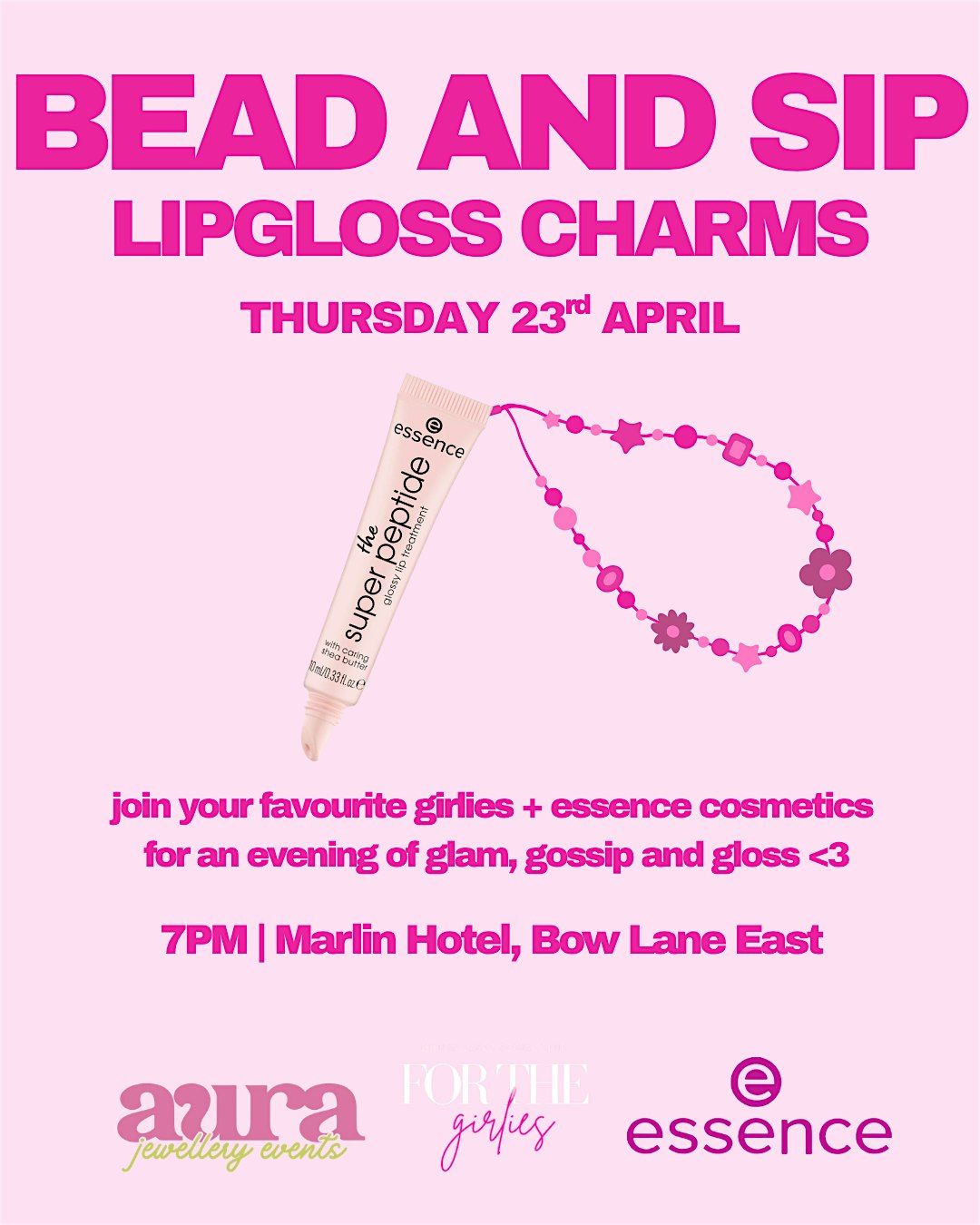 join your favourite girlies on april 23rd at 7pm to customise your gloss with a fun & social beading event✨