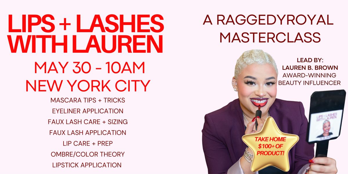 Join Lauren B. Brown (@RaggedyRoyal) for a hands-on and interactive class covering how to apply fake lashes and the perfect red lip combo!About this Event