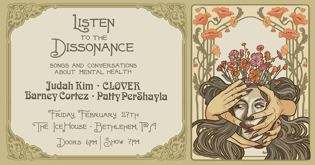 Back again for 2026, Listen to the Dissonance continues to blend intimate live music with heartfelt discussion. Featuring performances from acclaimed musicians CLOVER, Judah Kim, Barney Cortez, and Patty Pershayla, this year’s lineup brings together a diverse range of voices and musical styles — from evocative songwriting to genre-defying sounds — all united by their courage in sharing stories that matter. Each artist will perform solo sets interwoven with moderated conversations exploring mental health, resilience, creativity, and connection through music.