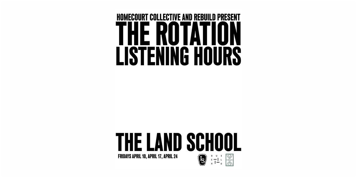In collaboration with Homecourt Collective, we're pleased to present a new Listening Hour series: The Rotation, where Homecourt Collective will welcome guest artists to The Land School for curated listening sessions. Join us for The Rotation this month on Fridays, April 10th, April 17th, and April 24th from 6 to 9 PM.
