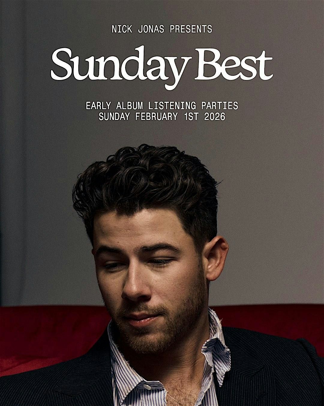 Come out onWednesday, February 4th from 1-3PM to hear Nick Jonas' new album "Sunday Best" 2 days early! The album is out February 6th but we'll be giving you the special sneak peak! Hang out, hear it first, leave with free a Nick Jonas Exclusive Poster, Coloring Book (BOTH WHILE SUPPLIES LAST), and for one lucky winner, a Sunday Best Apron!