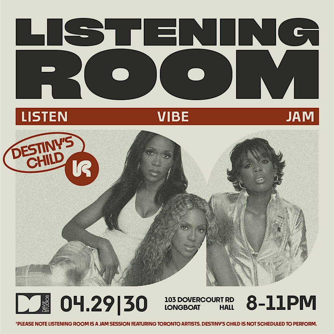 Musicians and music lovers alike are invited to step into our space to listen, vibe and jam around the iconic and nostalgic music of Destiny's Child! Come prepared to reimagine our favourite sounds!
