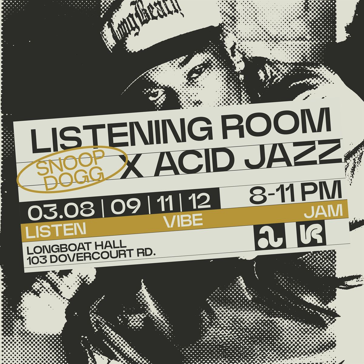 Listening Room is a jam series inspired by the Soulquarians process of music creation. For this crossover event with Acid Jazz, we will be celebrating the iconic music of Snoop Dogg! Acid Jazz-style our favourite Toronto MCs will be joining us for the jam portion showcasing their creativity and freestyle skills with the houseband. The room will be inspired and high energy. Our amazing houseband includes: