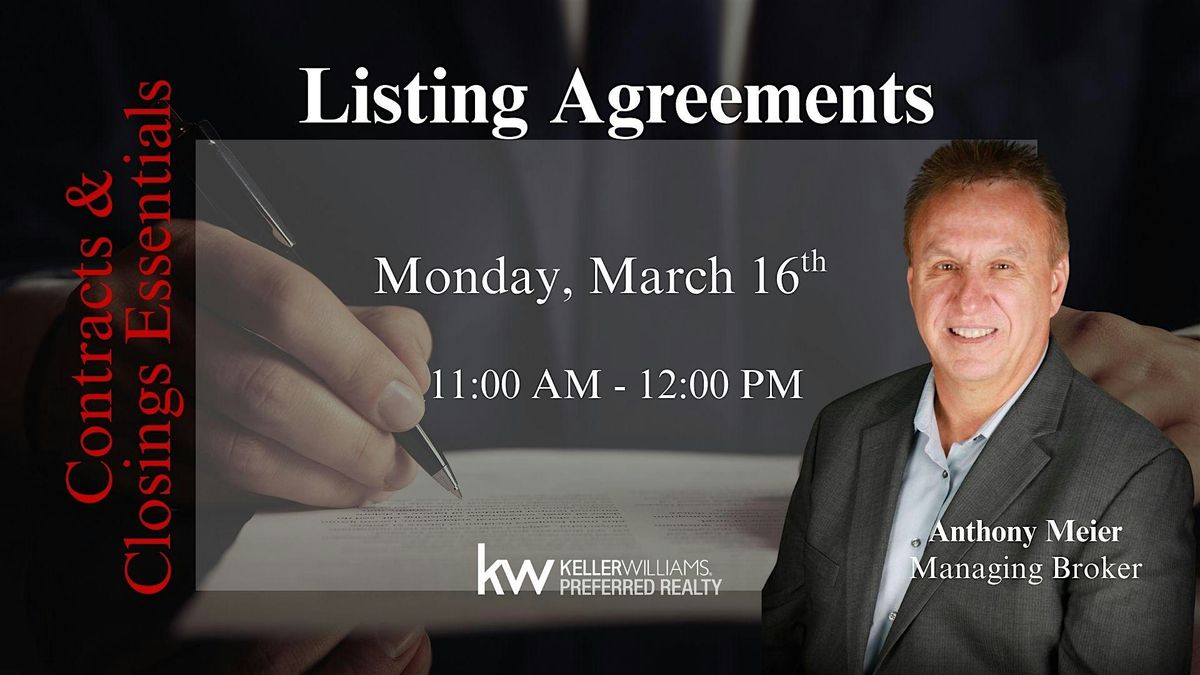 Join Managing Broker Anthony Meier for an in-depth session designed to strengthen your confidence and skills around the Listing Agreement.