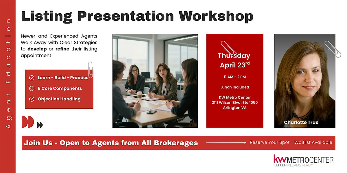 You’ll learn how to position pricing effectively, present a compelling marketing strategy, handle seller objections with confidence, and clearly guide clients through the entire selling process. The session is structured for real application: learn the framework, build your own presentation, and practice through guided roleplay with feedback.