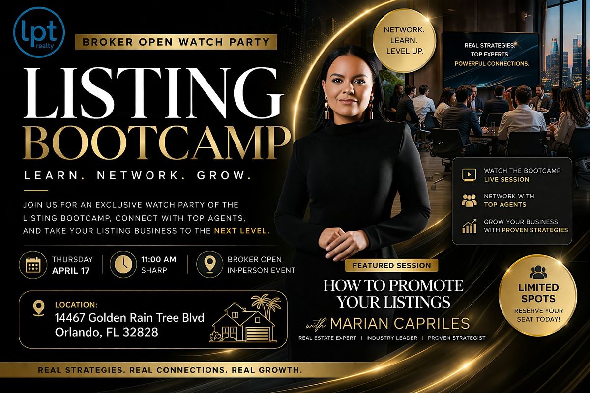 Join us for a unique Broker Open Watch Party experience designed for real estate agents who want to grow their listing business while expanding their professional network.