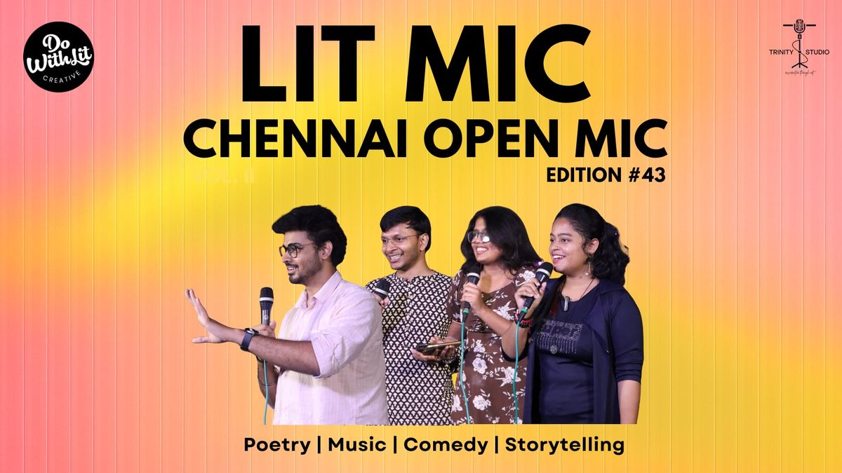 🎤 LITMIC Volume 2 – do.with.lit’s Chennai Open Mic 🎤Step into the spotlight and experience the thrill of sharing your talent with a crowd that’s here for it all! LITMIC Vol. 2 is Chennai's most exciting open mic event, curated for poets, storytellers, musicians, comedians, and anyone with a passion for self-expression. Whether you’re performing for the first time or are a seasoned stage artist, this is your moment to shine, connect, and be inspired. ✨ Why Attend LITMIC Vol. 2:Diverse Performances: Experience the richness of self-expression—poetry, stand-up comedy, music, and storytelling—all on one stage.Supportive Community: Perform in a space where every act is appreciated, every voice is heard, and every performer is celebrated.Interactive & Impromptu Moments: Take part in live games, spontaneous challenges, or witness surprise performances that make each LITMIC night unique.Networking & Collaboration: Meet fellow artists, explore creative collaborations, and bond with Chennai's vibrant community of performers and art enthusiasts.Memorable Keepsakes: Professional photos and videos capture your best moments on stage, so you can relive the magic long after the night ends.Whether you’re performing or simply soaking in the vibe, LITMIC Vol. 2 Chennai promises an afternoon of creativity, connection, and expression. Join us for a night where the stage comes alive, stories resonate, laughter flows, and every voice matters.