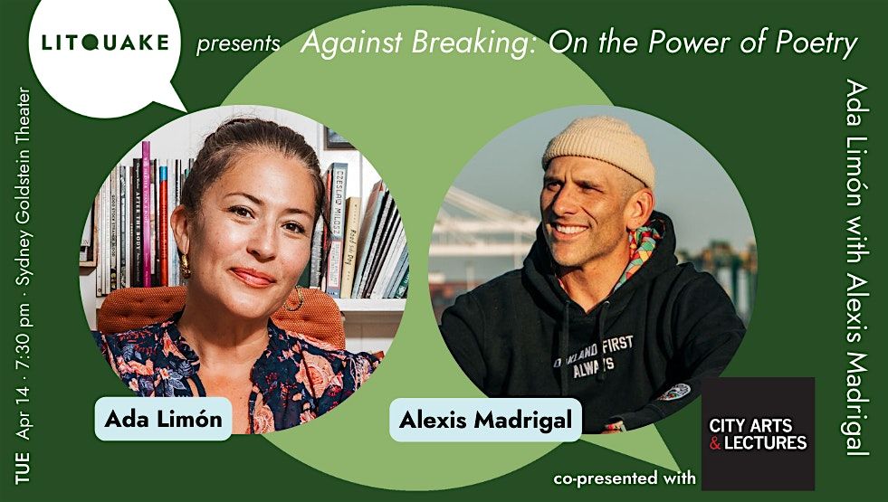 We're joining forces with City Arts & Lectures to celebrate the release of Ada Limón's latest. From the publisher: 24th Poet Laureate of the United States, AGAINST BREAKING: ON THE POWER OF POETRY inspires us to see poetry as much more than just words—as a powerful force for healing, a call to action, and a vibrant celebration of humanity’s many voices. Ada will be talking with her friend and Forum host, Alexis Madrigal. $50 with LITQUAKE4 (limited signed books available)
