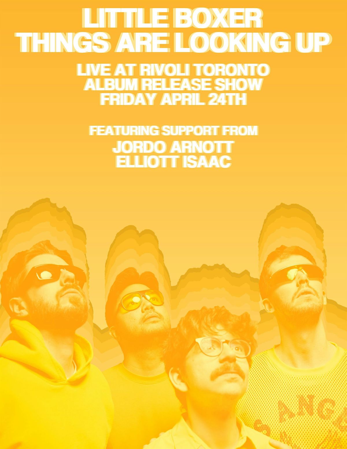 Come celebrate the release of Little Boxer's debut LP Things Are Looking Up live at the Rivoli in Toronto. Support by Elliott Isaac and Jordo Arnott. Event is 19+ and tickets available at door.