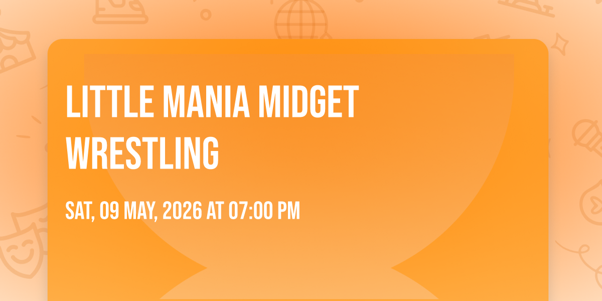 🎉 Welcome to Little Mania Midget Wrestling, where dreams come alive and possibilities are endless! 🏛️ Join us at Smokehouse Ranch in the heart of Miami, FL for an event that defies expectations. 📅 On May 9th, 2026 at 07:00 PM, be part of something truly extraordinary as we bring together innovation, entertainment, and pure magic. ✨ Every aspect has been carefully designed to ensure an unforgettable experience for all our guests. Whether you're seeking adventure, inspiration, or simply a break from the ordinary, this event promises to deliver beyond your wildest dreams. 🎊 Prepare for a journey into the extraordinary!http://maps.seatics.com/GA-Ringside_2021-04-01_2021-04-01_0831_12102025_121930_SVGC_tn.png