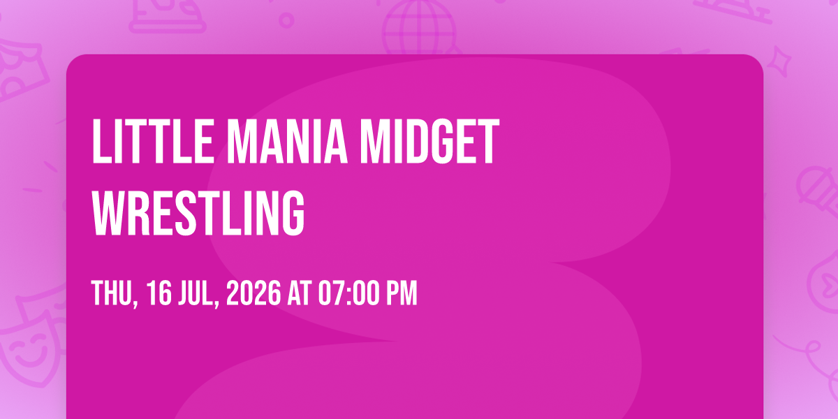 ✨ Experience the magic of Little Mania Midget Wrestling, where moments become memories that last a lifetime! 🏛️ The iconic Axe Towne Sports Bar in Hampstead, NH sets the perfect stage for an unforgettable celebration on July 16th, 2026 at 07:00 PM. 🌟 It's been a curated experience that brings together the best of entertainment and innovation, creating an atmosphere of wonder and excitement. From the moment you arrive, you'll be immersed in a world where the ordinary transforms into the extraordinary. 🎊 Book early to secure your place in what promises to be an event that will be talked about for years to come!http://maps.seatics.com/GA-Ringside_2021-04-01_2021-04-01_0831_02252026_171233_SVGC_tn.png