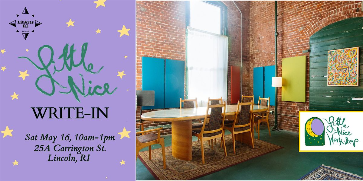 Join LitArts RI on Sat, May 16 from 10am-1pm for a community write-in at Little Nice Workshop in Lincoln, Rhode Island. Little Nice is a community-centered space where writers and musicians can grow, take risks, and make meaningful work. Check out their studio and settle in to write, or bring along a chair or blanket to enjoy the outdoor space along the Blackstone River (the ground is gravel, but picnic tables are available). Meet fellow creatives, learn about events and opportunities with LitArts RI and Little Nice Workshop, and spend time generating work in an inspiring environment.