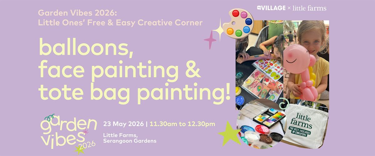 Free & easy creative space for little ones at MyVillage—balloons, face painting & tote bag painting fun. Express interest now! 🎨