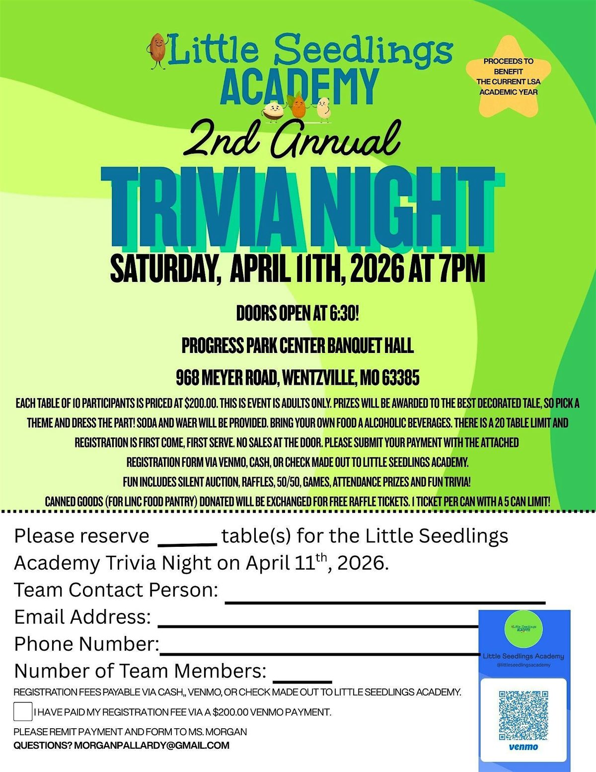Come join Little Seedlings Academy for a night of trivia, games, 50/50, raffles, and silent auction items!