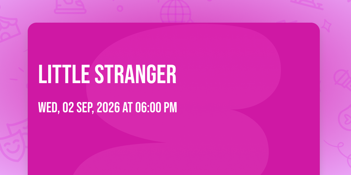 🎉 Welcome to Little Stranger, where dreams come alive and possibilities are endless! 🏛️ Join us at Ramova Theatre in the heart of Chicago, IL for an event that defies expectations. 📅 On September 2nd, 2026 at 06:00 PM, be part of something truly extraordinary as we bring together innovation, entertainment, and pure magic. ✨ Every aspect has been carefully designed to ensure an unforgettable experience for all our guests. Whether you're seeking adventure, inspiration, or simply a break from the ordinary, this event promises to deliver beyond your wildest dreams. 🎊 Prepare for a journey into the extraordinary!http://maps.seatics.com/GeneralAdmissionEvent_2021-07-08_1018_11272024_093231_SVGC_tn.png