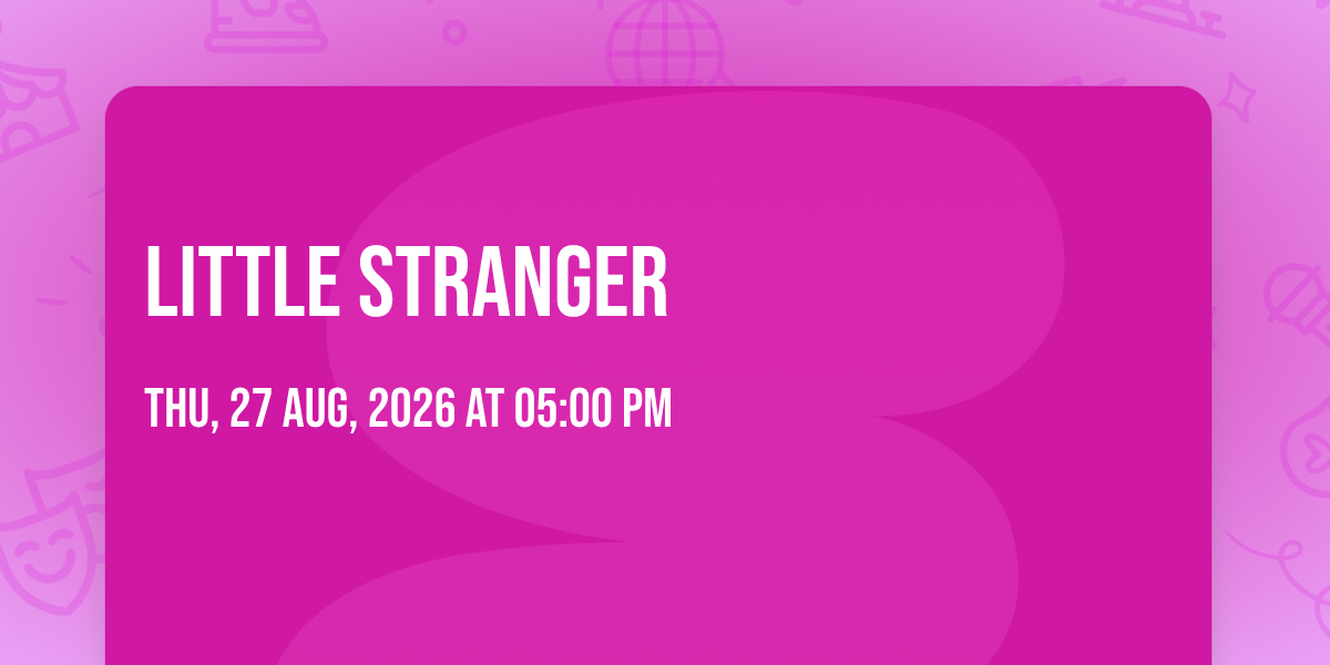 🎉 Prepare to be amazed at Little Stranger, the most anticipated gathering of the season! 🌟 Set against the stunning backdrop of Rockwell At The Complex in vibrant Salt Lake City, UT, this event promises to redefine your expectations. 📅 Mark your calendars for August 27th, 2026 at 05:00 PM and get ready to immerse yourself in an atmosphere of wonder and excitement. ✨ From the moment you arrive, you'll be transported into a world where memories are made and stories come alive. They have crafted an experience that perfectly harmonizes entertainment, innovation, and community spirit. 🌈 Join us as we create moments that will be discussed for years!http://maps.seatics.com/GeneralAdmissionEvent_2018-05-11_1514_SVGC_tn.gif