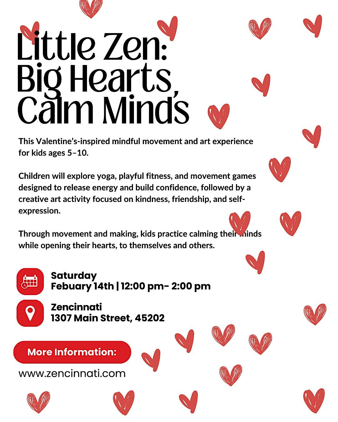Little Zen: Big Hearts, Calm Minds is a Valentine’s-inspired mindful movement and art experience for kids ages 5–10.