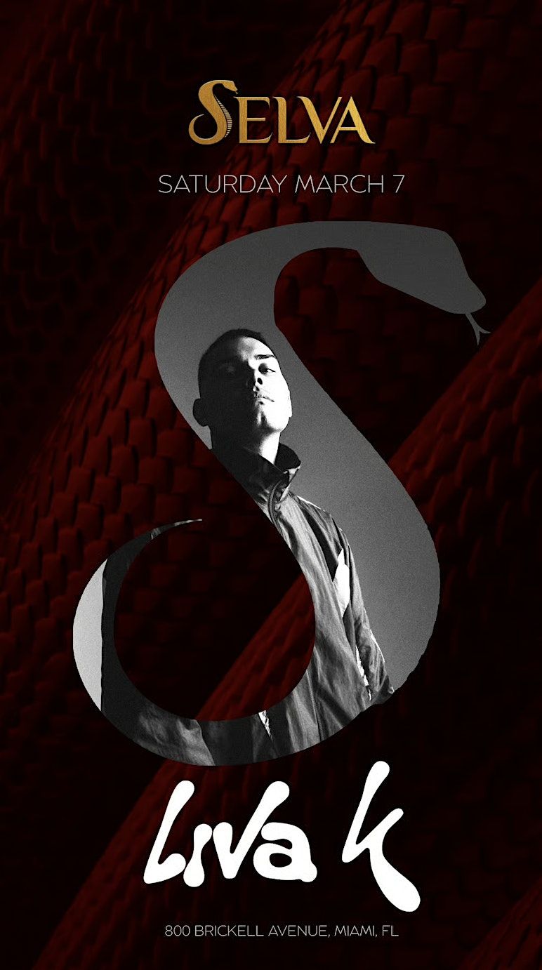 LIVA K brings his signature Afro-house sound to Selva at Amazonico for a high-energy night in the heart of Miami. Expect hypnotic rhythms, vibrant beats, and an electric late-night atmosphere as Selva transforms into an immersive jungle-inspired dance experience. Don’t miss this unforgettable evening of music and Miami nightlife.